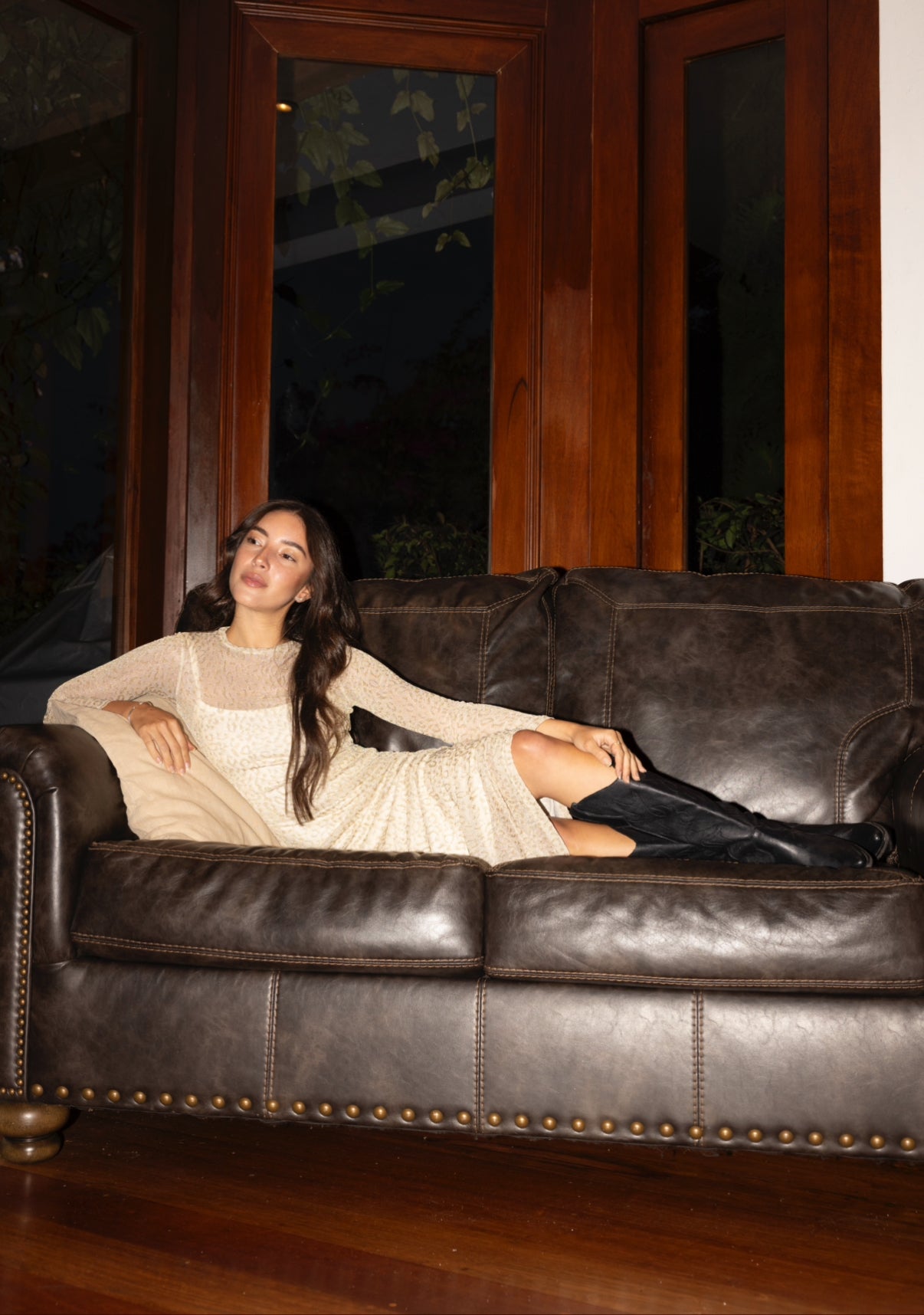 Con mangas largas, cuello clásico y un fit que estiliza sin esfuerzo, es la pieza ideal para llevar del día a la noche. Perfecto para combinar con botas, sandalias o tacones según tu estilo. Una prenda versátil, moderna y con un encanto artístico que no pasa desapercibido.